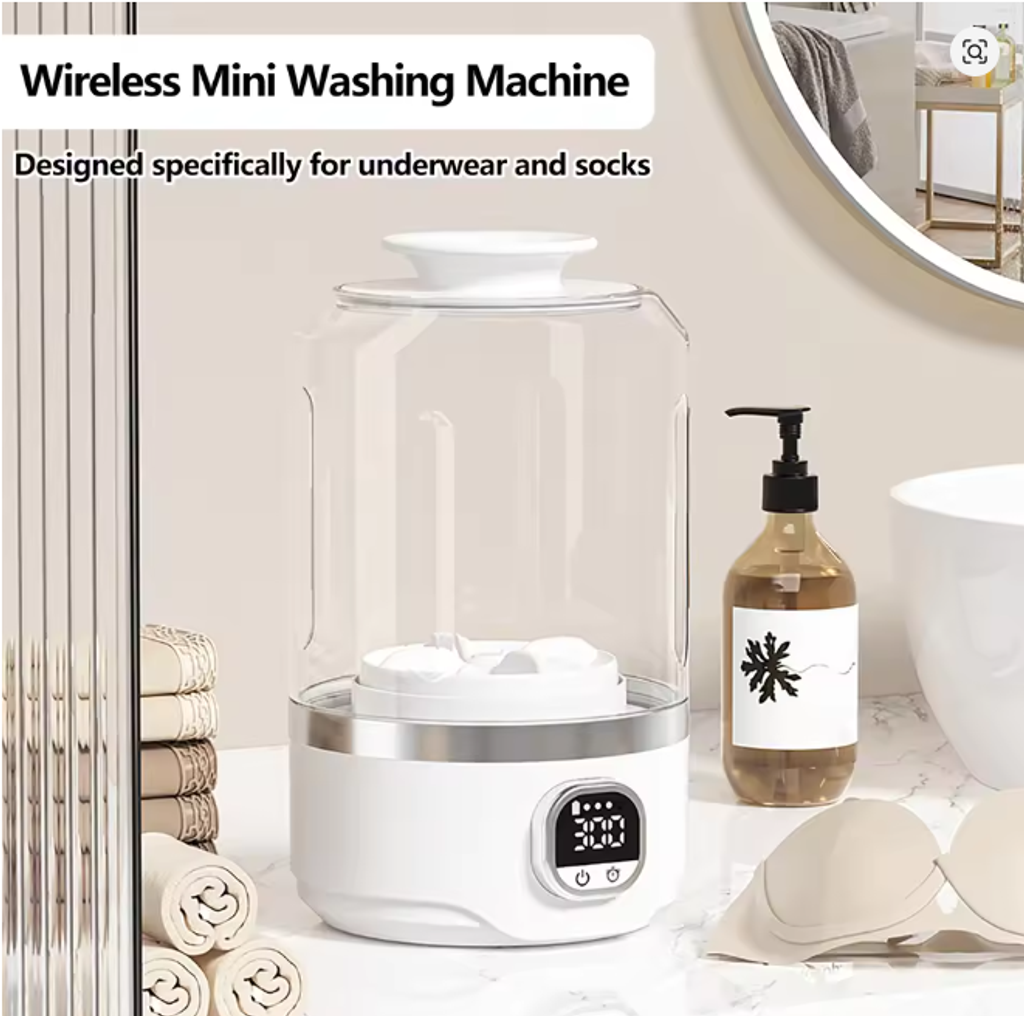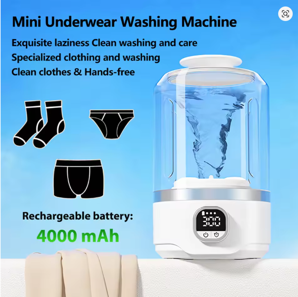 🌤4000mAh Battery Fully Automatic Mini Portable Washing Machine 🔋 Wash Underwear & Socks 🧦 Perfect for Business Trips & Outdoor Adventures ✈️🏕️